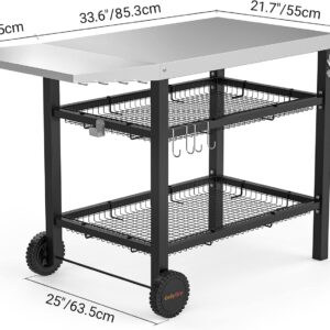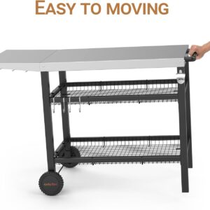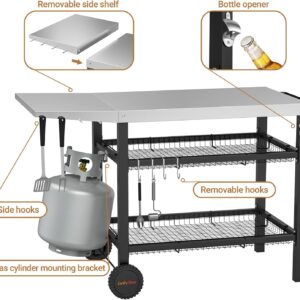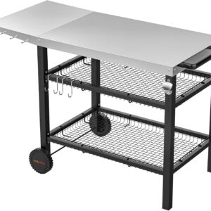 Onlyfire Grillwagen | Edelstahl Grilltisch mit großer Arbeitsfläche und Beistelltisch, Grill Beistelltisch Outdoor Grilltisch Outdoor Servierwagen Outdoor Garten Trolley für Outdoor, Garten