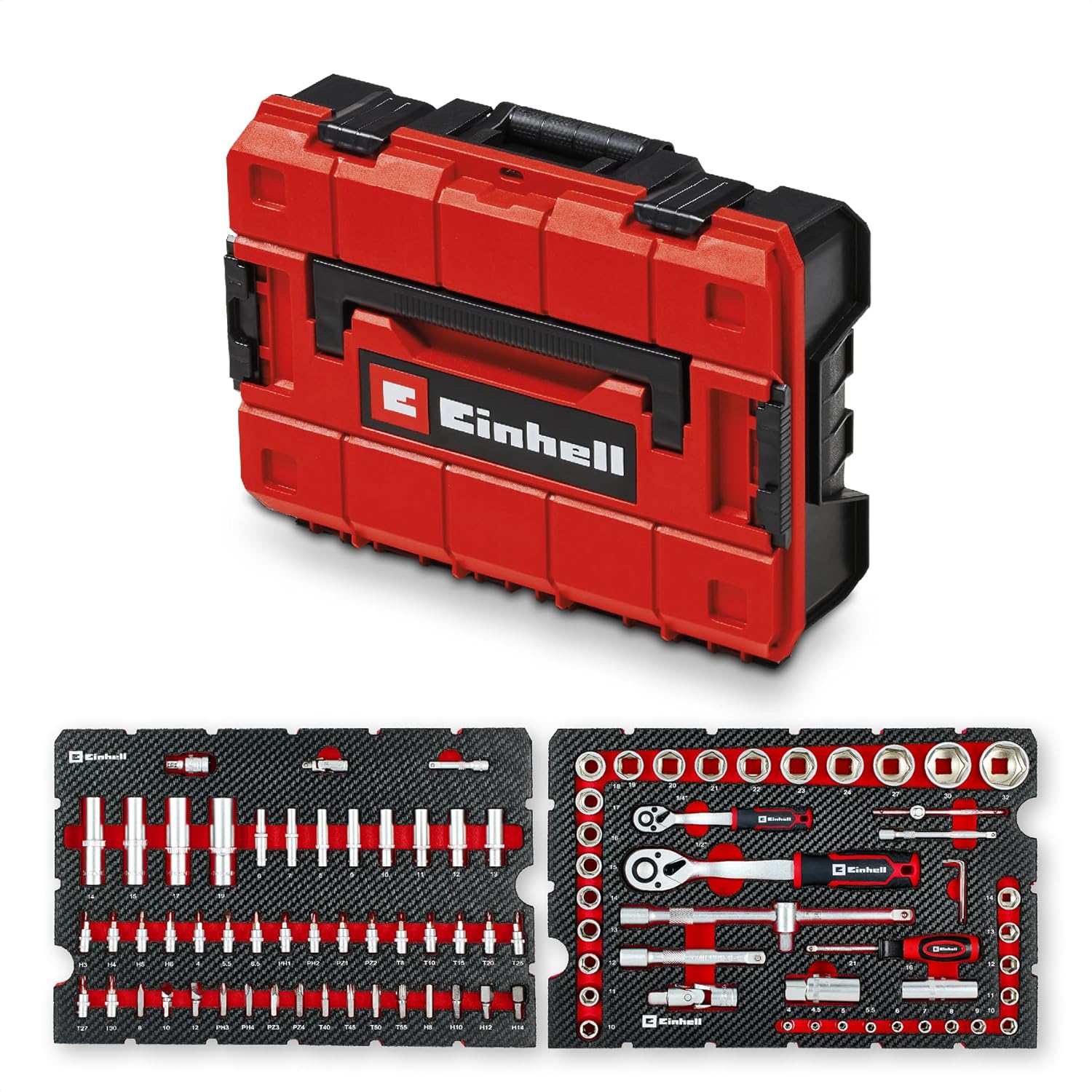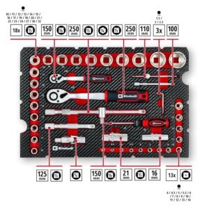 Der Einhell Werkzeugkoffer E-Case ist die ideale Komplettlösung für ambitionierte Heimwerker und Profis, die Wert auf Ordnung und Mobilität legen. Mit 92 präzise aufeinander abgestimmten Werkzeugteilen hast du für jede Schraub- und Montageaufgabe in der Werkstatt oder am Fahrzeug sofort das richtige Zubehör griffbereit.