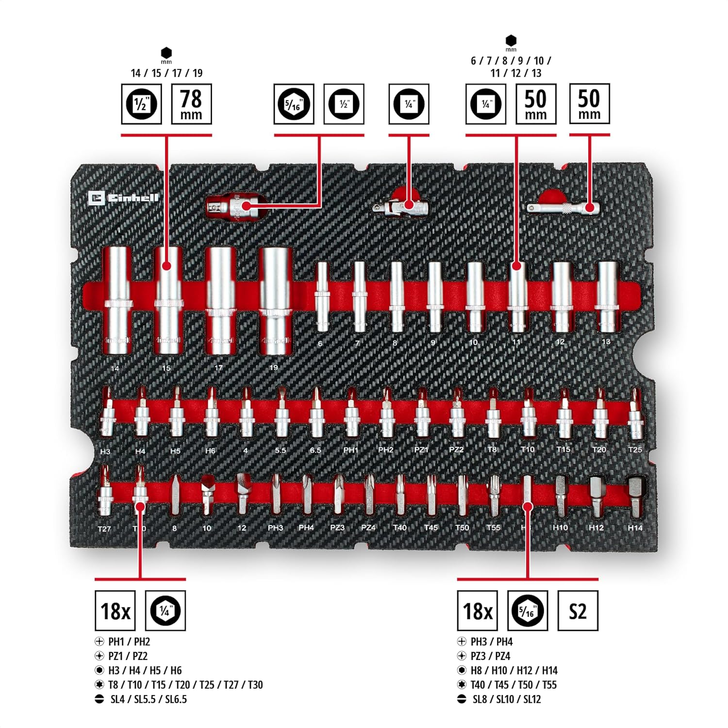Ob in der heimischen Garage, in der semiprofessionellen Werkstatt oder mobil auf der Baustelle – das Set deckt die gängigen Größen ab. Unser Team empfiehlt den Einsatz besonders Mechanikern und Schraubern, die ihre Ausrüstung kompakt und griffbereit halten wollen. Da die Einsätze für manuelle Handbetätigung konzipiert sind, ist das Set ideal für den Einsatz bei handbetriebenen Knarren. Für den durchgehenden Einsatz mit Schlagschraubern ist dieses Set – wie üblich bei verchromten Handwerkzeugen – weniger geeignet, da das Material hierfür nicht gehärtet ist.