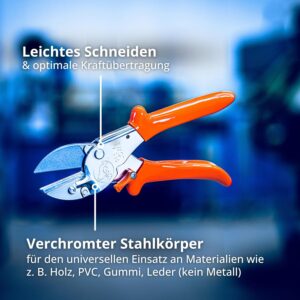 • Dank der Griffe aus weichem Kunststoff und einem Gewicht von 295 g liegt die langlebige Werkzeugschere bei diversen Arbeiten an Profilen, Leisten, Rohren oder Schläuchen immer optimal in der Hand