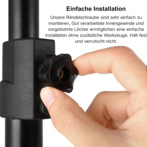 - Handfest reicht: Ziehe die Griffe nur handfest an. Für extreme Vibrationen oder dauerhafte Fixierungen reicht der Anpressdruck der Handfläche völlig aus.