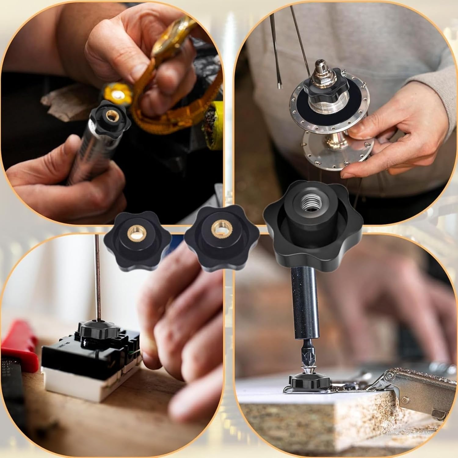 Diese Sterngriffmuttern sind universell einsetzbar, wenn es darum geht, Bauteile fixierbar zu machen. Ob am Schiebeschlitten der Tischkreissäge, bei der Justierung von Anschlagschienen oder zur Höhenverstellung an Werkstatttischen – sie sind überall dort zu Hause, wo eine schnelle Klemmung gefragt ist. Besonders Schreiner und Metallbauer schätzen sie für den Bau von eigenen Spannvorrichtungen.