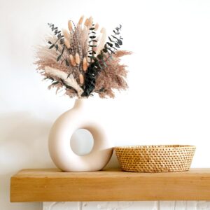 Dieses Set aus Pampasgras und Eukalyptus richtet sich an alle, die ihren Wohnbereich oder das Home-Office ohne großen Aufwand mit einem modernen Design-Element aufwerten möchten. Es bietet eine pflegeleichte und ästhetische Lösung für die tägliche Raumgestaltung im beliebten Boho-Stil. Besonders geeignet für Interior-Fans, Hobby-Dekorateure und Profis, die Wert auf eine stimmungsvolle Arbeits- oder Wohnatmosphäre legen.