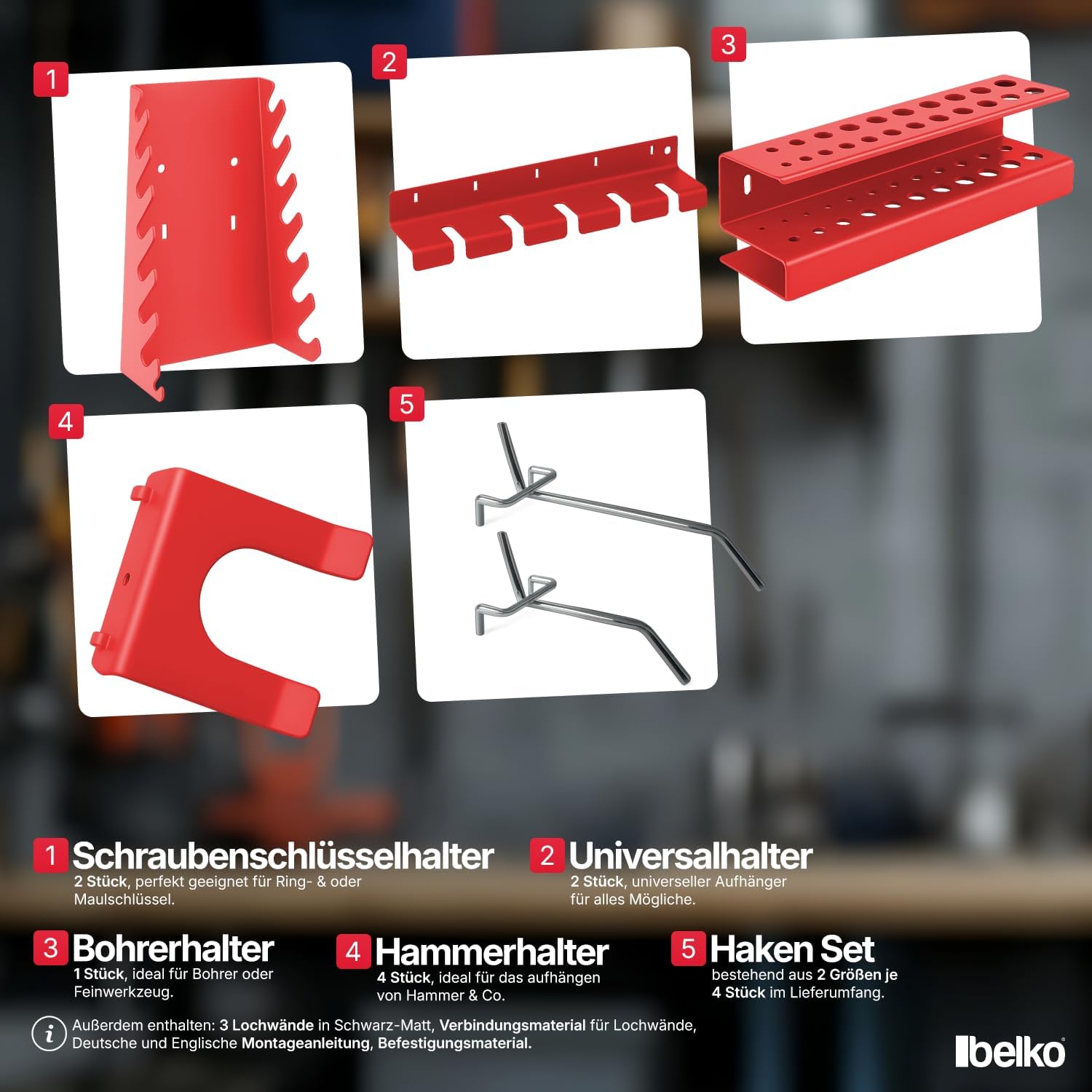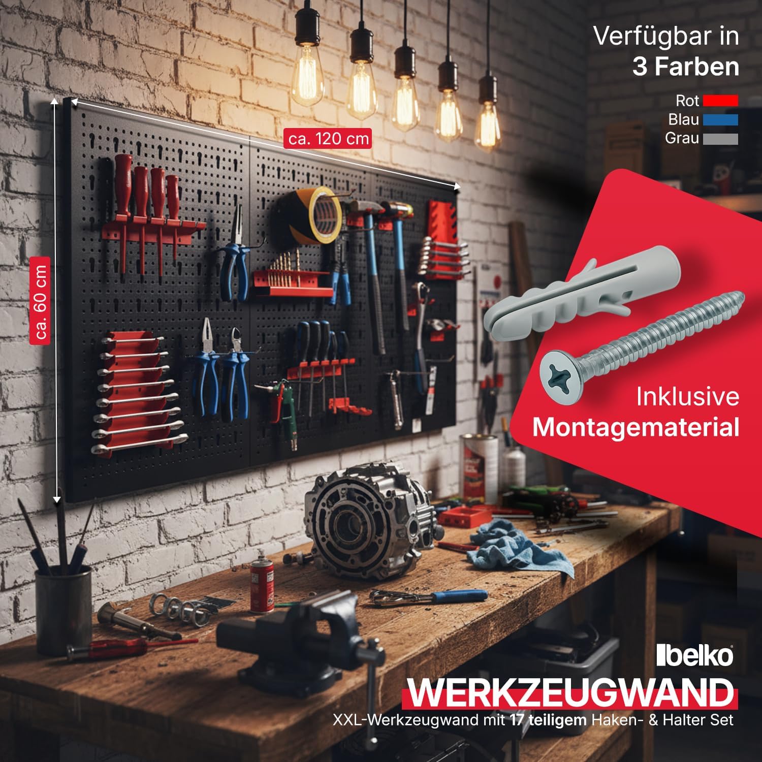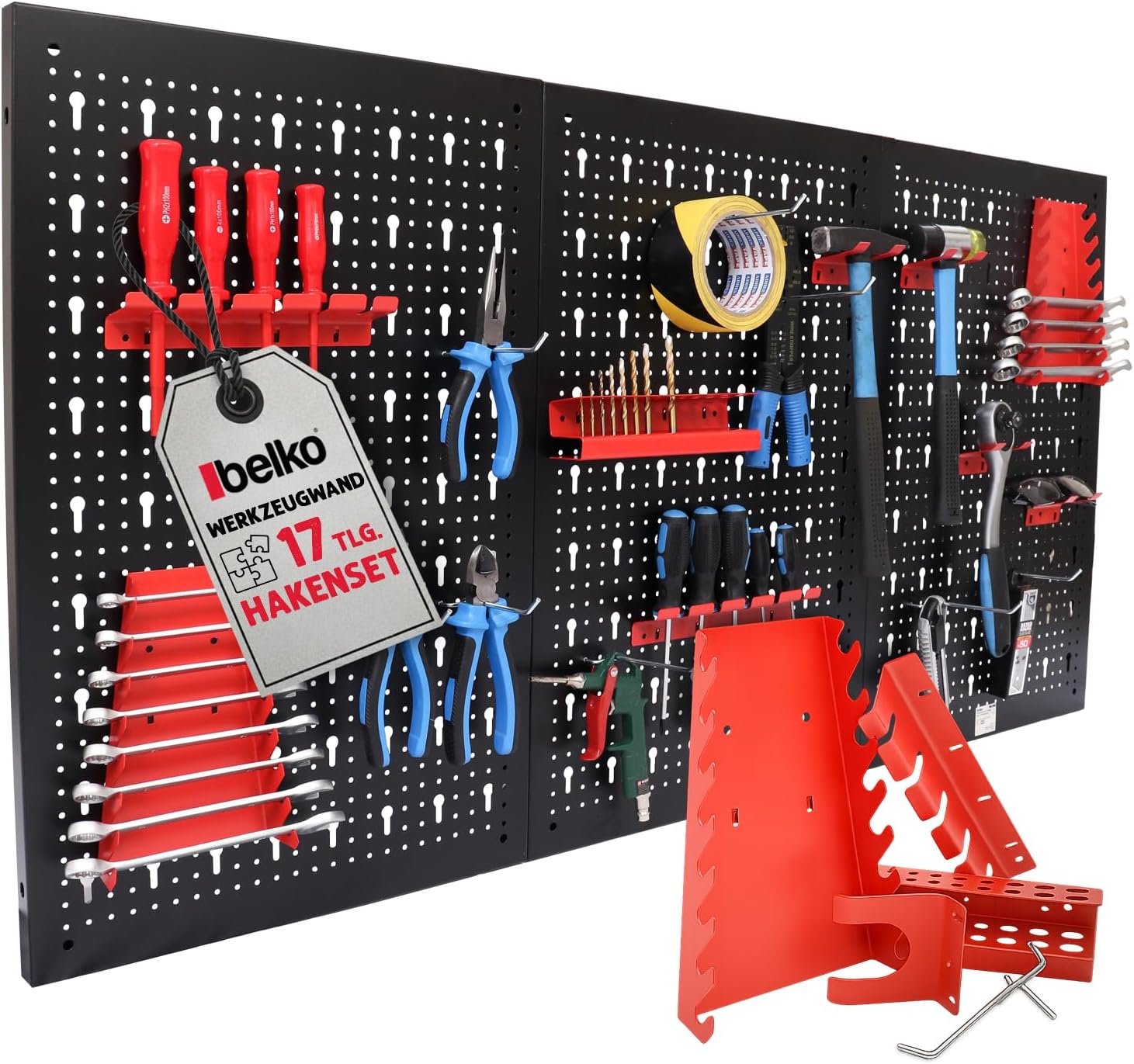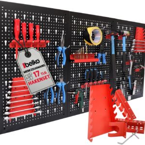 - Sofort einsatzbereit: Das im Lieferumfang enthaltene 17-teilige Hakenset ermöglicht die direkte Organisation von Zangen, Schraubendrehern und anderen Handwerkzeugen ohne Zusatzkauf.