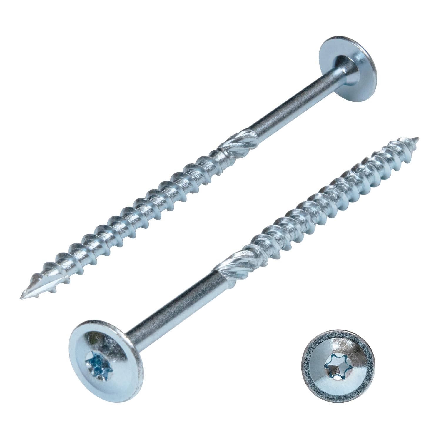 - Hohe Anzugswerte: Der große Tellerkopf fungiert als integrierte Unterlegscheibe, was ein Durchziehen des Kopfes im Holz effektiv verhindert.