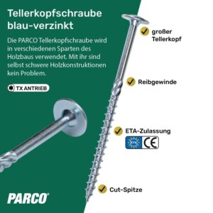 Diese PARCO Tellerkopfschrauben in 8×160 mm sind das Werkzeug der Wahl für Zimmerleute, Holzbau-Profis und ambitionierte Heimwerker, die massive Konstruktionen sicher verbinden müssen. Mit ihrem extrem hohen Kopfdurchlass und der präzisen Kraftübertragung sorgen sie für bombenfeste Verbindungen bei Dachstühlen, Unterkonstruktionen oder im modernen Holzrahmenbau.