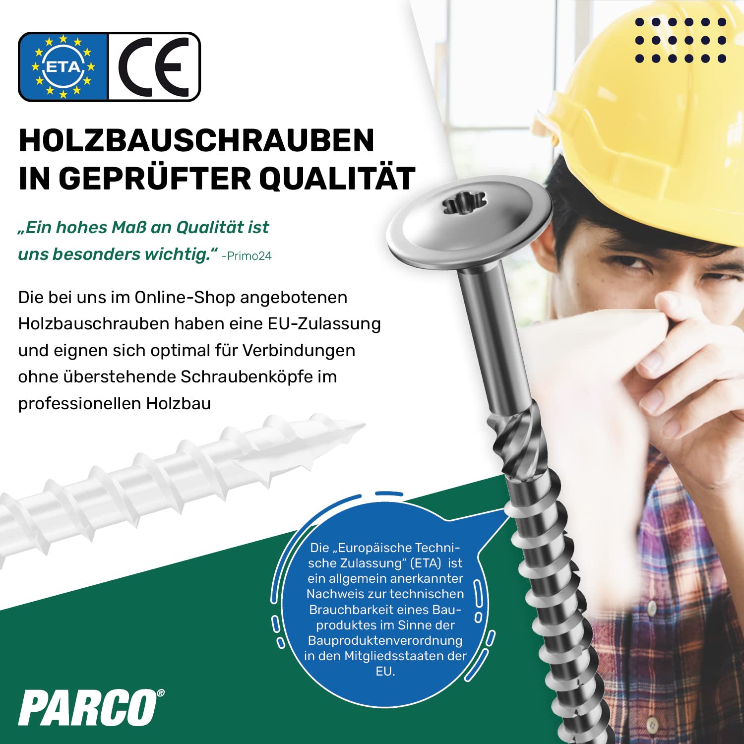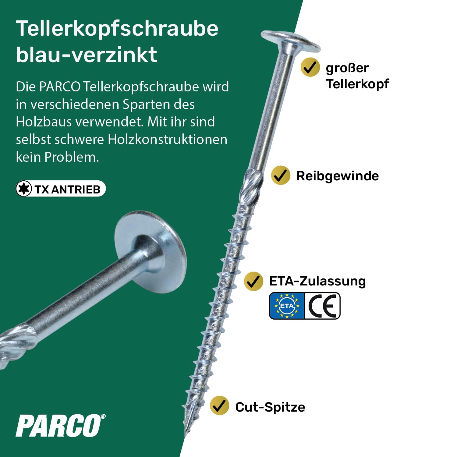 Im harten Arbeitseinsatz willst du dich nicht mit durchrutschenden Bits herumschlagen. Der TX-Antrieb, wie ihn die PARCO-Schrauben nutzen, sorgt dafür, dass die Kraft des Akkuschraubers ohne großen Verschleiß direkt in den Kopf übertragen wird. Das verhindert nerviges „Ausnudeln“ und spart Zeit, gerade wenn du über Kopf oder in ungemütlichen Winkeln arbeiten musst.