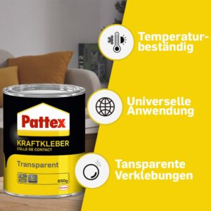 Der Pattex Kraftkleber Transparent eignet sich ideal für eine Vielzahl von Materialien, darunter Holz, Kunststoffe, Metall, Gummi, Leder und Kork. Er ist besonders vielseitig einsetzbar, da er nach der Aushärtung eine transparente Klebefuge hinterlässt. Mit einer Bewertung von 4,6 Sternen überzeugt er Anwender durch seine zuverlässige Klebekraft.