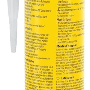 - Witterungsbeständige Formulierung: Durch die hohe Beständigkeit gegenüber Umwelteinflüssen ist der Kleber ideal für den Einsatz an Fassaden, Regenrinnen oder im Gartenbereich geeignet.