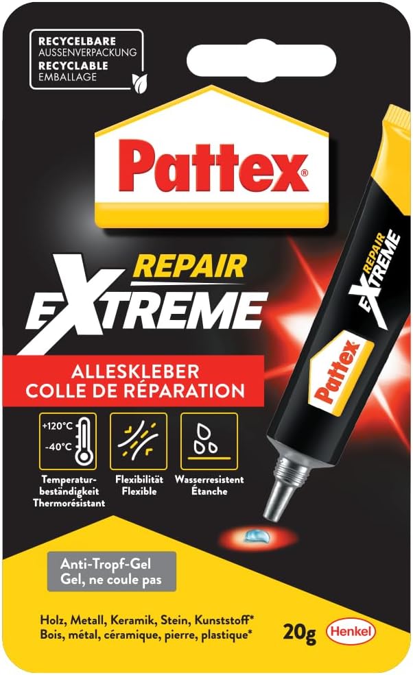Pattex Repair Extreme ist ein leistungsstarker Klebstoff der Marke Pattex, der für flexible und extrem belastbare Verklebungen konzipiert wurde. Mit einer sehr guten Bewertung von 4.5★ überzeugt er durch seine zuverlässige Klebekraft bei verschiedensten Materialien. Er zeichnet sich zudem dadurch aus, dass er nicht schrumpft und somit präzise Ergebnisse liefert.