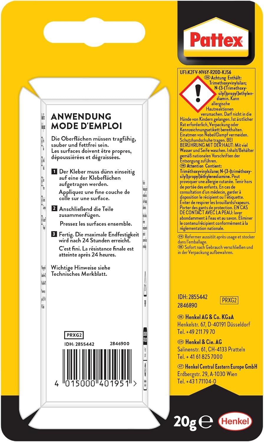 Technische Eigenschaften für das Produkt Pattex Repair Extreme, nicht-schrumpfend und flexibler Alleskleber