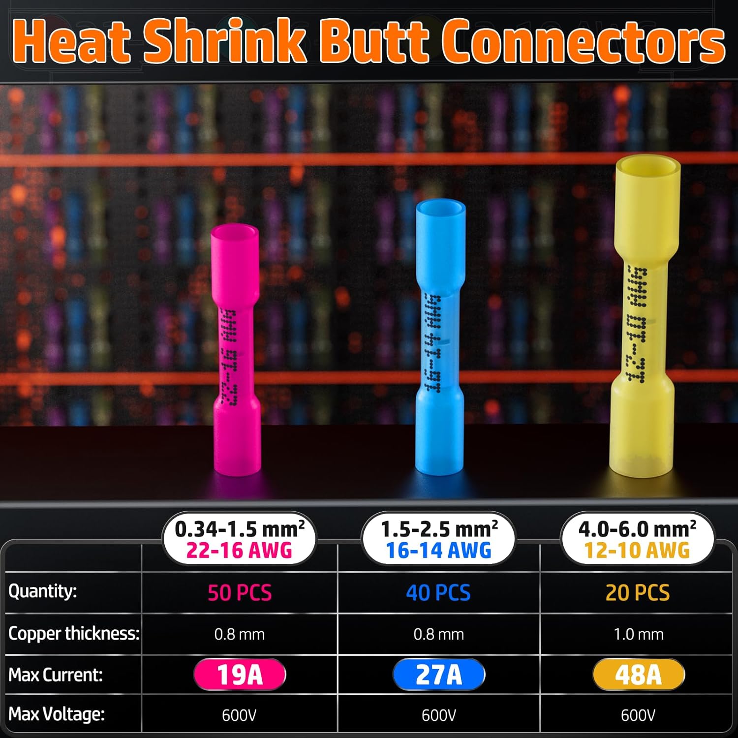 • VERZINNTER KUPFERKERN (BIS 1,0 MM): Gefertigt aus hochwertigem, verzinntem Kupfer – Rot & Blau: 0,8 mm, Gelb: 1,0 mm. Sorgt für maximale Leitfähigkeit, starken Halt und hohe Belastbarkeit bis 48A.