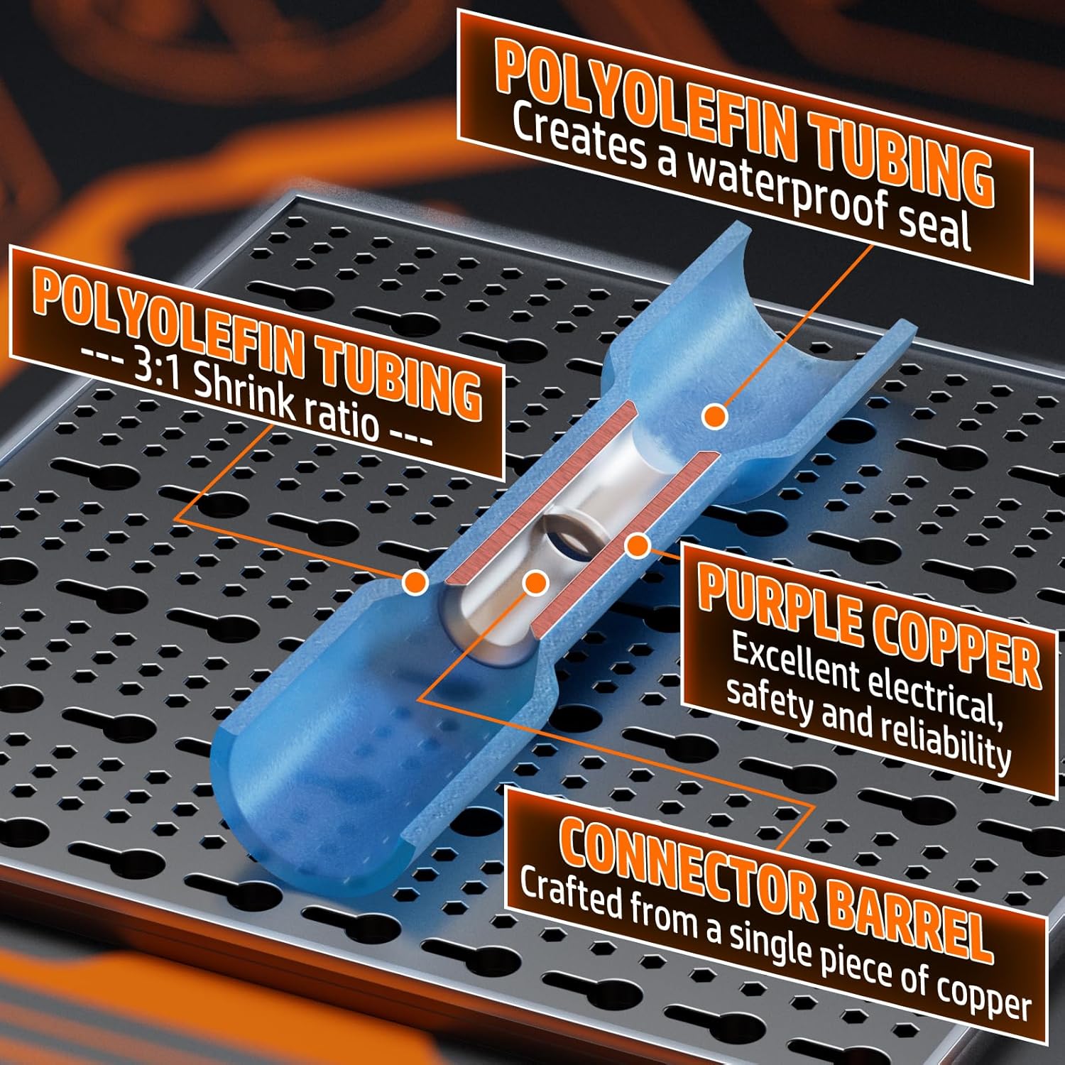 PEBA Crimpzange Set mit Stoßverbindern, Schrumpfverbinder & Kabelverbinder Set, IP67 wasserdicht, verzinntes Kupfer bis 48A, 0,34–6,0 mm², für KFZ, Marine & Elektrik