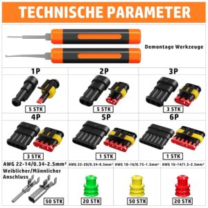 - Komplettes Set: Enthält sämtliches Zubehör – von der Crimpzange bis zu den 1–6-poligen Steckern und Abziehwerkzeugen –, um sofort ohne Zukäufe starten zu können.