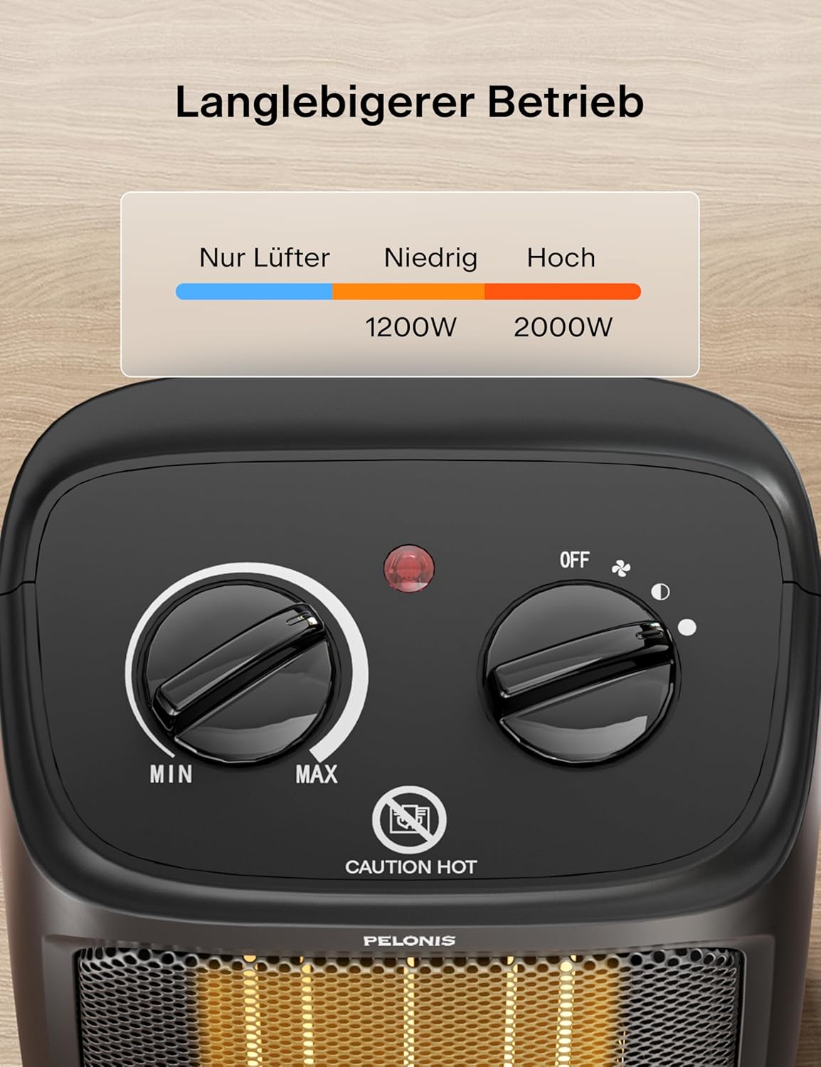 | Heizstufen | 2 Stufen (Low/High) + Lüftermodus |