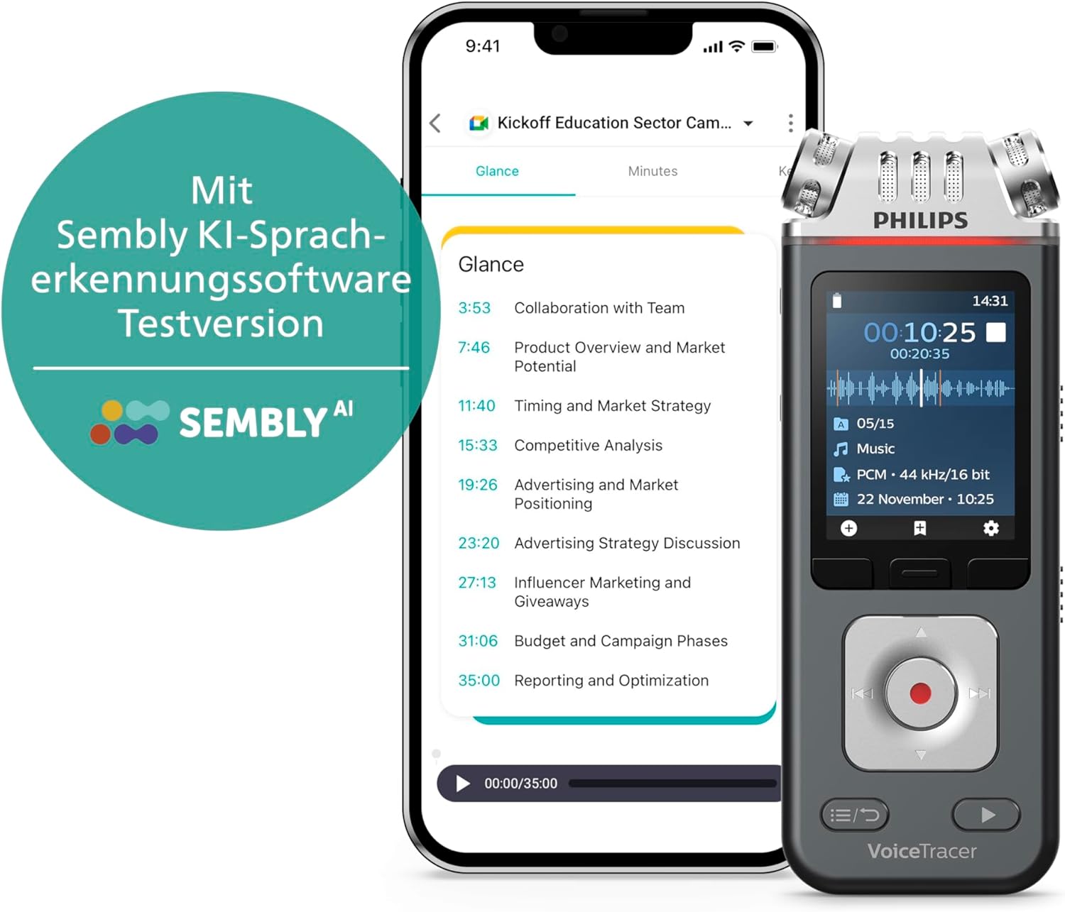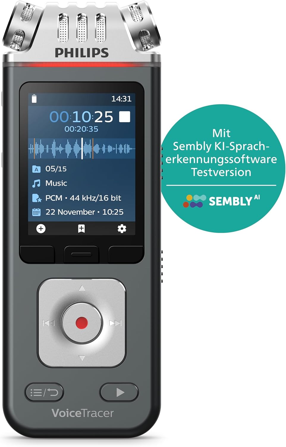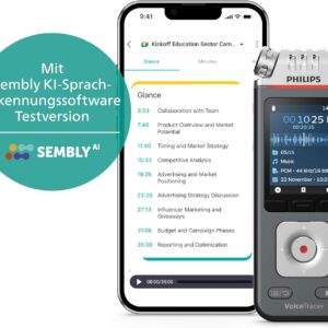 Philips DVT6115 VoiceTracer, Diktiergerät, Aufnahmegerät, 3 HiFi Mikrofone für Musikaufnahmen optimiert, inkl. Sembly AI-Testlizenz: Transkription & KI-ZusammenfassungenPhilips DVT6115 VoiceTracer, Diktiergerät, Aufnahmegerät, 3 HiFi Mikrofone für Musikaufnahmen optimiert, inkl. Sembly AI-Testlizenz: Transkription & KI-Zusammenfassungen