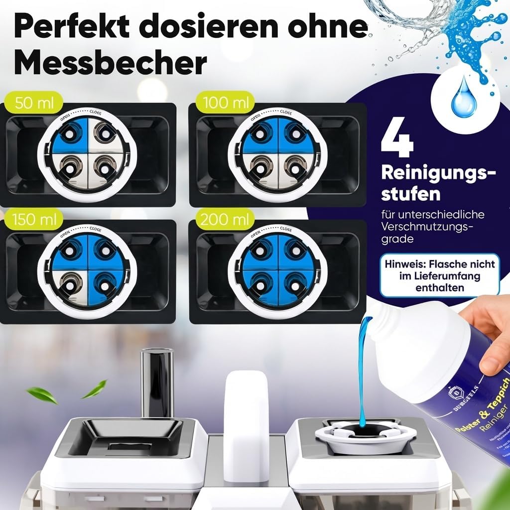 - Praktische Dosiereinheit: Die integrierte Dosiervorrichtung sorgt für ein korrektes Mischverhältnis des Reinigungsmittels, was den Materialverschleiß minimiert und das Reinigungsergebnis optimiert.