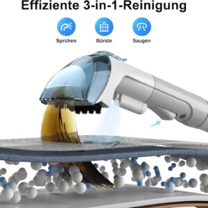 - Effektive 3-in-1-Reinigung: Die Kombination aus Sprühen, Bürsten und Saugen löst selbst eingetrocknete Flecken direkt aus dem Gewebe und entfernt diese in einem Arbeitsgang.