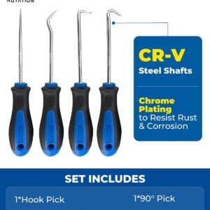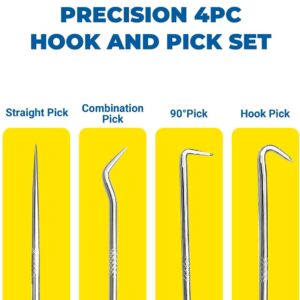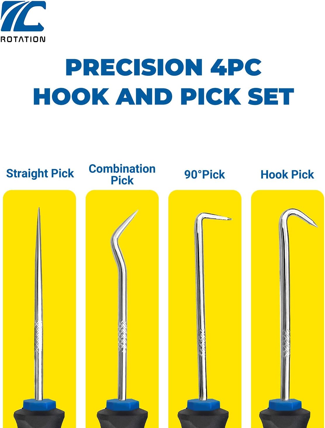 Das Set deckt mit seinen vier Teilen eigentlich alles ab, was du in der Werkstatt brauchst: Du bekommst einen 90-Grad-Pick, einen 45-Grad-Haken, einen 135-Grad-Kombinationspick und einen klassischen geraden Pick. Gerade bei fummeligen Arbeiten, etwa wenn du einen O-Ring aus einer Nut ziehen willst oder Kabelstecker entriegeln musst, macht diese Zusammenstellung den Job sofort einfacher, weil du für jeden Winkel das passende Werkzeug greifbar hast.