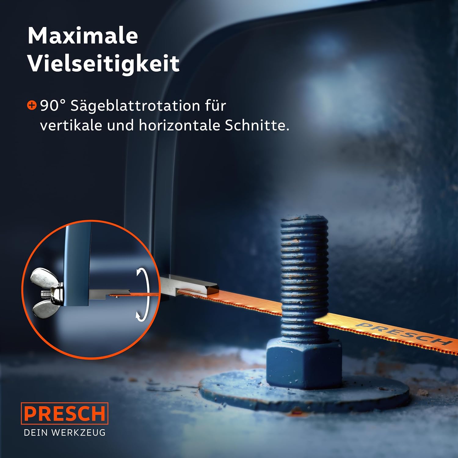 Presch Metallsäge 300mm - Inkl. BI-Metall Sägeblatt für präzise Schneidleistung - 90° Sägeblatt-Rotation für horizontale & vertikale Schnitte - Schneller Blattwechsel durch optimierte BauweisePresch Metallsäge 300mm – Inkl. BI-Metall Sägeblatt für präzise Schneidleistung – 90° Sägeblatt-Rotation für horizontale & vertikale Schnitte – Schneller Blattwechsel durch optimierte Bauweise