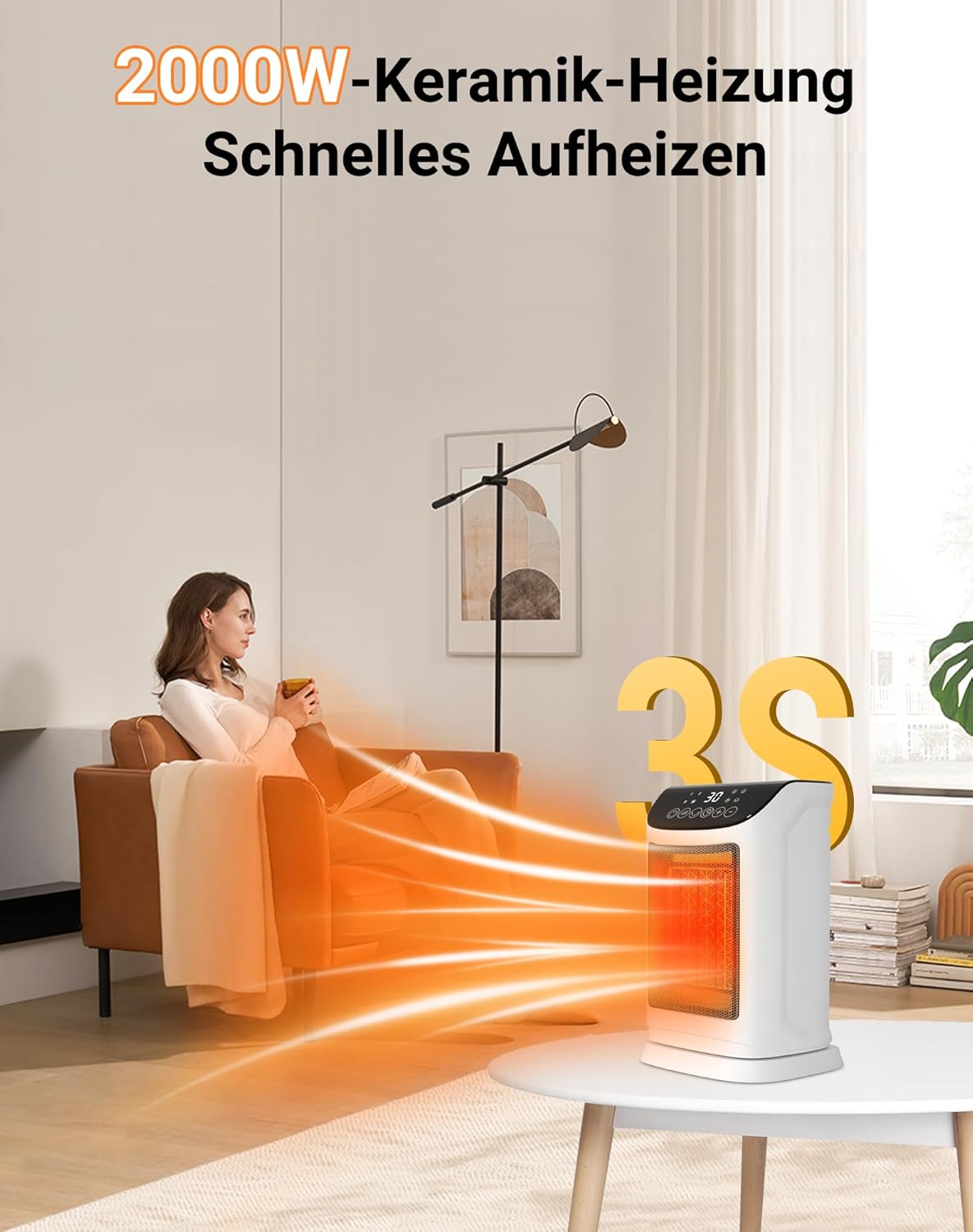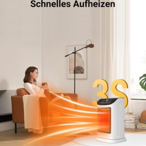 Mit einer Leistung von 1800 Watt bietet der Heizlüfter eine effiziente Wärmequelle für verschiedene Räume. Die PTC-Technologie sorgt dabei für eine schnelle und gezielte Erwärmung der Umgebungsluft.