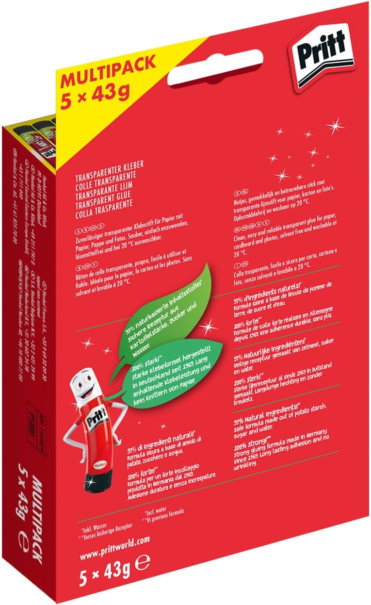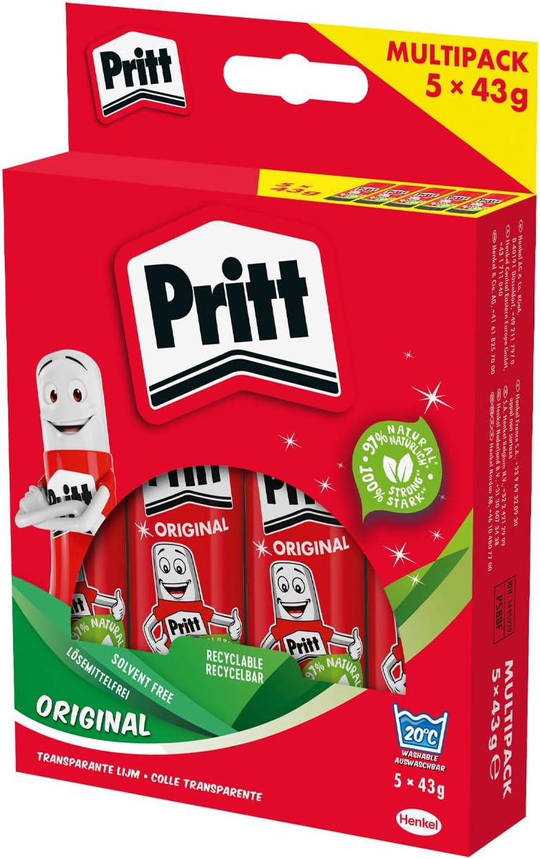 Pritt Klebestift, sicherer und kinderfreundlicher Bastelkleber für Kunst und Bastelarbeiten, starker Kleber für Schule & Bürobedarf, 5x43g Pritt StiftPritt Klebestift, sicherer und kinderfreundlicher Bastelkleber für Kunst und Bastelarbeiten, starker Kleber für Schule & Bürobedarf, 5x43g Pritt Stift