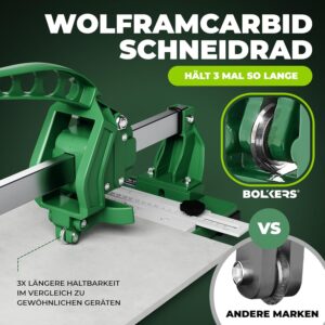 Der BOLKERS Fliesenschneider ProCut ist ein vielseitiger Allrounder für Ihre Fliesenprojekte. Er unterstützt Sie zuverlässig bei der Umsetzung Ihrer Vorhaben, wobei Sie für die exakte Eignung der Fliesenformate die allgemeine Eignung bei Renovierungsarbeiten berücksichtigen können.