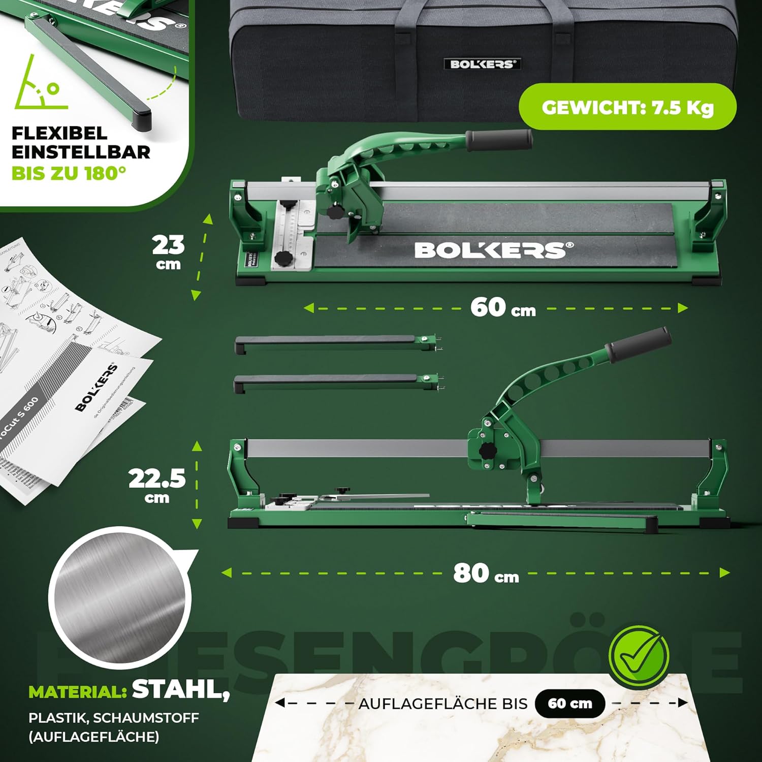 Unsere Kunden berichten regelmäßig, dass der BOLKERS ProCut S 600 das Fliesenlegen um ein Vielfaches beschleunigt hat. Mit einer überdurchschnittlichen Bewertung von 4.7 von 5 Sternen bei über 5000 Rezensionen ist er eines der beliebtesten Werkzeuge in der Kategorie.