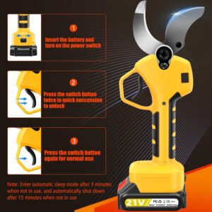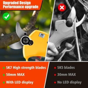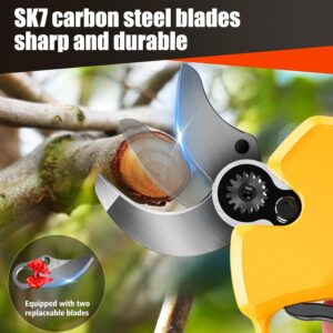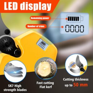 - 【4000 mAh Akku mit großer Kapazität】: Unsere Elektrische Gartenschere ist mit zwei 2000 mAh Akkus ausgestattet, die problemlos einen Arbeitstag bewältigen können. Der Vorteil von zwei Akkus besteht darin, dass Sie einen Akku verwenden können, während der andere aufgeladen wird. So wird die tägliche Arbeit nicht beeinträchtigt.