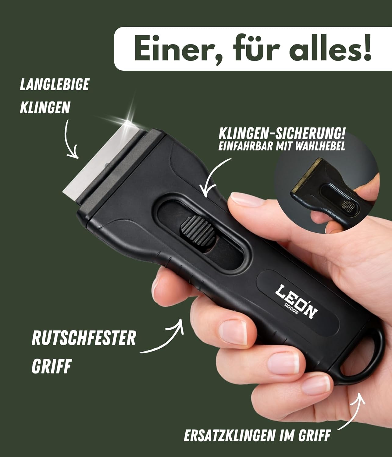| Lieferumfang | 1x Schaber, 5x Wechselklinge |