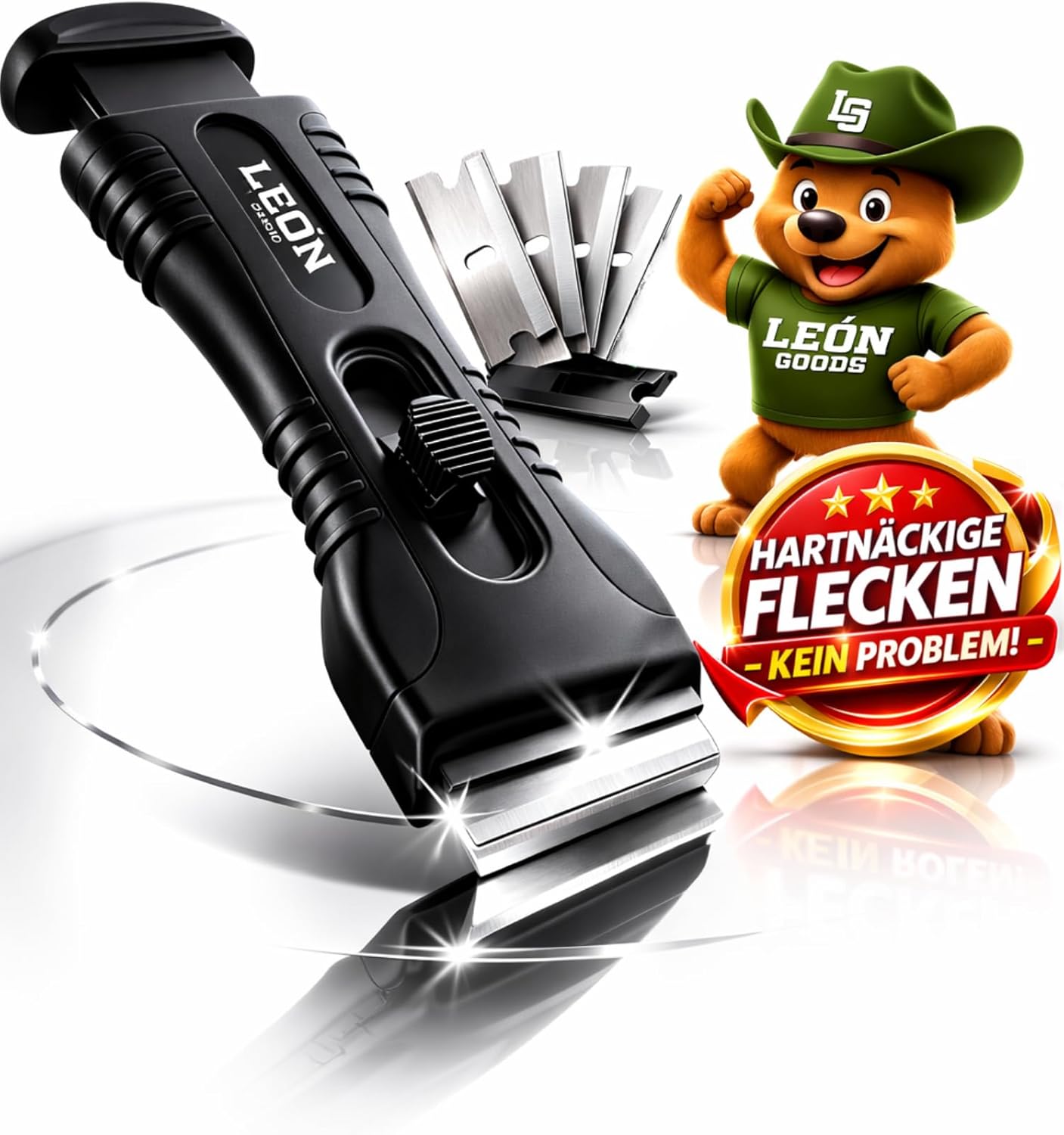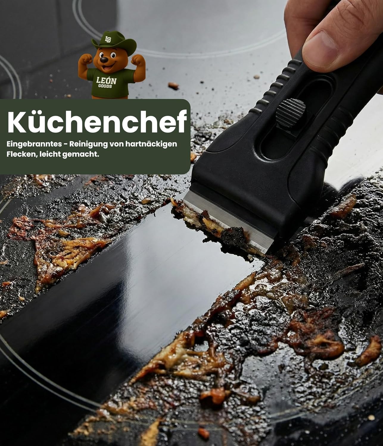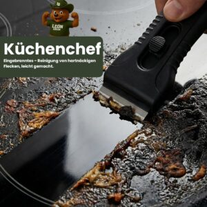 - Effektive Reinigungskraft: Die carbongehärteten Klingen lösen eingebrannte Speisereste, Fettschichten und hartnäckige Krusten in einem Durchgang, was dir Zeit und Kraftaufwand bei der Herdreinigung spart.
