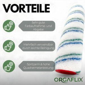 Professionelle Ergebnisse gelingen am besten mit hochwertigem Werkzeug, wie unseren ORGAFLIX Farbwalzen, die für eine optimale Farbaufnahme entwickelt wurden. Achten Sie zudem auf einen gleichmäßigen Druck und eine saubere Führung der Walze auf der Wandfläche.