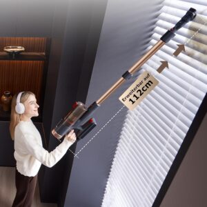 Der Proscenic P11 Ultra wiegt nur 1,3 kg und ist damit außergewöhnlich leicht. Dieses geringe Gewicht macht ihn ideal auch für Senioren und ermöglicht ermüdungsfreies Staubsaugen. Dank des verstellbaren Teleskopstabs lässt er sich zudem perfekt an jede Körpergröße anpassen.