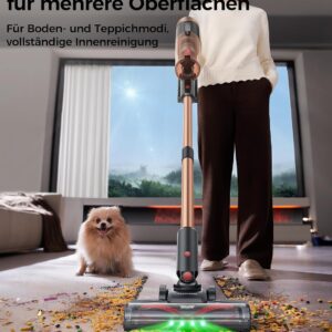 Der Proscenic P11 Ultra Staubsauger Kabellos ist die perfekte Lösung für Haushalte mit Haustieren, ambitionierte Heimwerker und alle, die ihre Werkstatt sowie Wohnräume effizient von Feinstaub, Spänen und Tierhaaren befreien möchten. Mit einer außergewöhnlichen Saugkraft von 50kPa und der innovativen GreenEye-Technologie entfernt dieser Akkustaubsauger selbst mikroskopisch kleinen Schmutz, der mit bloßem Auge kaum sichtbar ist. Das selbststehende Design und der herausnehmbare Akku mit 50 Minuten Laufzeit machen ihn zum flexiblen Helfer in Werkstatt, Garage, Auto und allen Wohnbereichen.