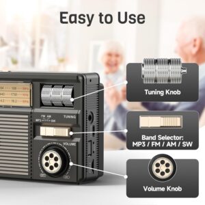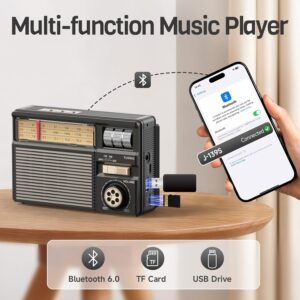 PRUNUS J-139 AM/FM/SW Solar Radio mit Akku 1800mAh, Weltempfänger Radio Exzellentem Empfang, Kofferradio mit Bluetooth 6.0 Unterstützt AUX/USB/TF-Karte Playback, Einfach Transistorradio für Senioren. – prunus
