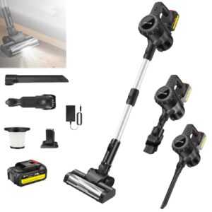 Qimu Akku Staubsauger 500W 45000Pa 45Min Akkustaubsauger Kabellos mit Licht, Anti-Tangle-Bürste, Superleise Selbststehend Akkusauger für Tierhaare Teppiche Hartböden (Akku Staubsauger mit 1 Akku)