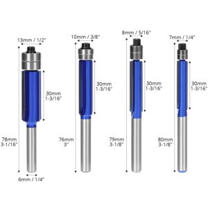 QWORK® 4Stück Schaft Bündigfräser, 6mm Schaft, Schnittdurchmesser 1/4", 5/16", 3/8", 1/2" für Massivholz, Verbundplatten, Kunststoffplatten