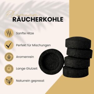 - ⭐ PREMIUM-RÄUCHERKOHLEN – Hochwertige, schnellglühende Kohletabletten mit zuverlässiger Zündung.