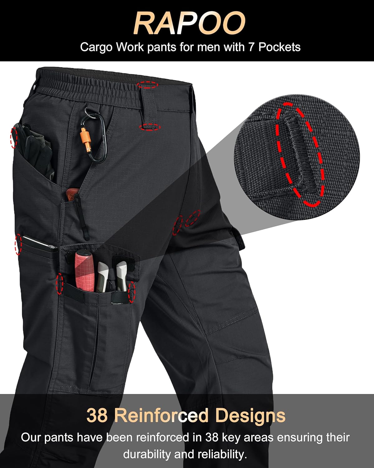 Bei der Entwicklung der Rapoo Cargohose Herren Outdoor stand die Alltagstauglichkeit im Vordergrund. Das eingesetzte Material zeichnet sich durch seine Widerstandsfähigkeit aus. Anders als bei herkömmlichen Freizeithosen hält dieses Ripstop-Gewebe auch mechanischer Beanspruchung stand. DieNähte sind so verarbeitet, dass auch bei hoher Belastung der Stoff nicht so schnell nachgibt.