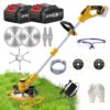 Rasentrimmer mit Akku 21V, 800W/60Min Laufzeit, 4 in 1 Akku Rasentrimmer 2 Akkus, Verstellbarer Stiel, 4 Blätter, Freischneider Akku für Gartenschneiden, Blau