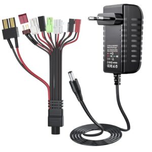 RC Ladegerät für NIMH/NICD-Batterien - 2-10s Akku Ladegerät für RC Car/Boot/Flugzeug/Drohne/Airsoft/Modell - Mit 9 Universaladaptern, 500-1000 mA Ladeströmung