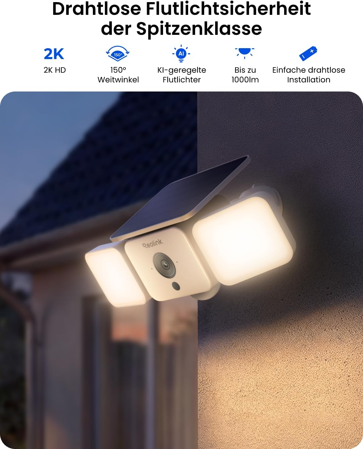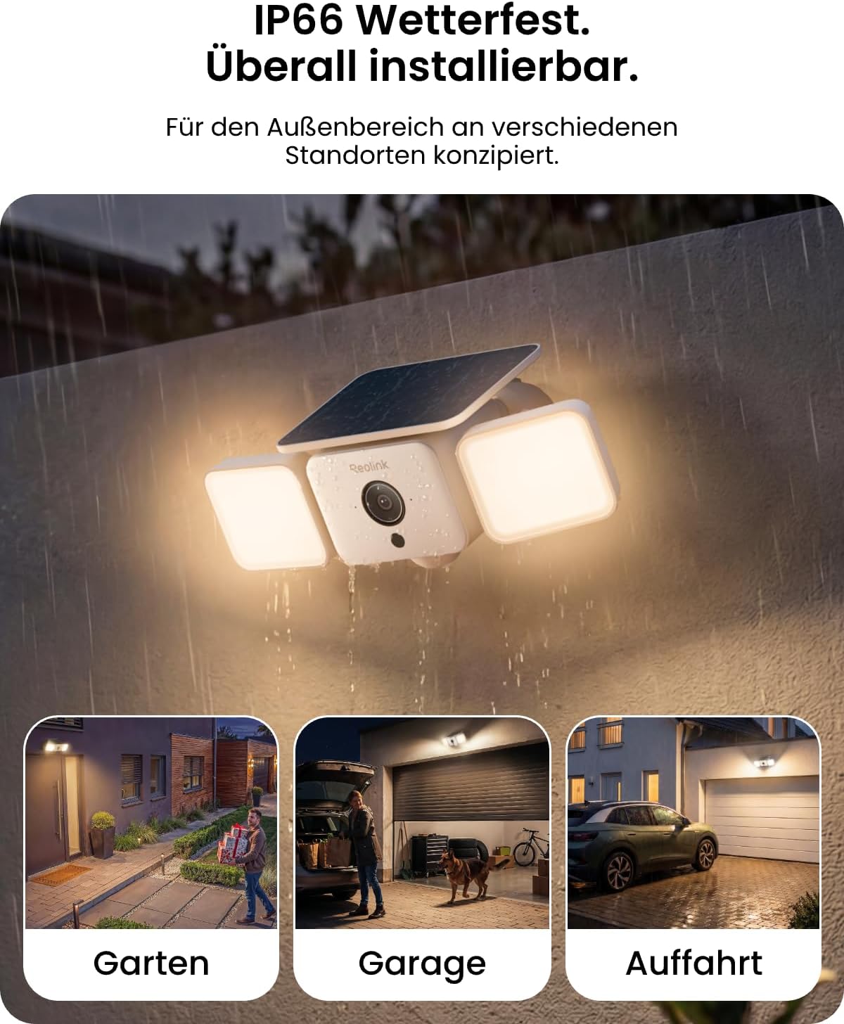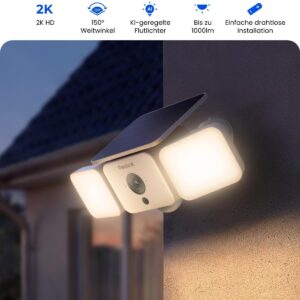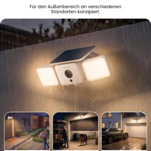 - All-in-One Solar-Flutlichtkamera: Diese Überwachungskamera aussen solar ist eine leistungsstarke Kombination aus 2K 4MP-Auflösung, einer bewegungsaktivierten Beleuchtung mit bis zu 1000 Lumen und kabelloser Solarenergie – für sichtbare Abschreckung und zuverlässigen Schutz im Außenbereich ohne komplizierte Verkabelung. Als vielseitige Solar Kamera Wlan Outdoor einsetzbar, liefert sie zuverlässige Sicherheit für Einfahrten, Höfe und Eingänge.