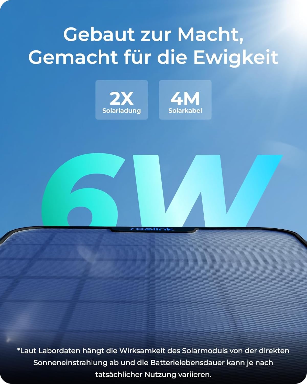 | Stromversorgung | 6W-Solarpanel / Akkubetrieb |