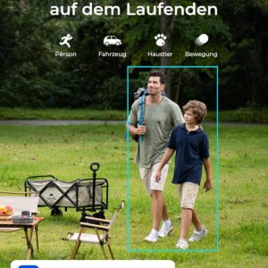 - Präzise Objekterkennung: Die integrierte KI identifiziert gezielt Personen, Fahrzeuge und Tiere. Das verhindert Fehlalarme durch herabfallendes Laub oder kleinteilige Bewegungen und spart Speicherplatz.