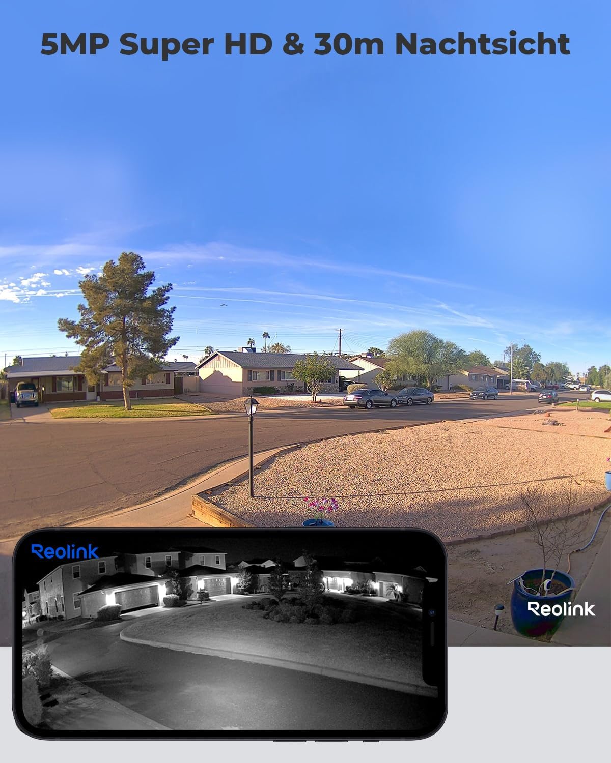 - 5MP Nachtsicht in hoher Qualität: 2560×1920 5MP Super HD Auflösung bietet Ihnen eine klarere visuelle Qualität und ein flüssigeres Live-Streaming. Der Nachtsichtbereich der Kamera beträgt im Dunkeln mit einem 80° Weitwinkel bis zu 30m. Dies ist eine gute Garantie, um Sicherheitsbedrohungen vorzubeugen