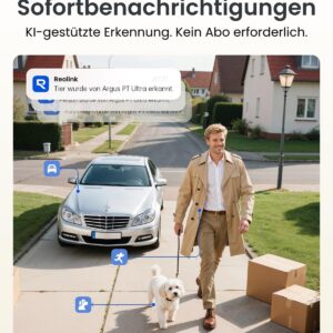 Reolink Erste 4K Solar Überwachungskamera Aussen Akku, Argus PT Ultra + Solarpanel, 2,4&5GHz WiFi, Auto-Tracking, Solar WLAN Kamera Outdoor mit 8MP UHD Farbnachtsicht, KI-Erkennung, Keine Monatsgebühr – Reolink
