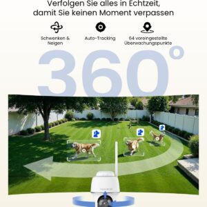 - 360° Abdeckung & Fernzugriff: Beseitigen Sie tote Winkel mit 355° Pan und 140° Tilt. Mit der Reolink App/Client können Sie diese 4K Kamera jederzeit und überall aus der Ferne checken und steuern und mit Ihrer Familie oder dem Zusteller neben der Cam sprechen.