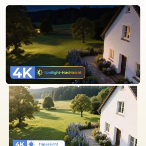 - 4K 8MP Farbsicht bei Tag & Nacht: Diese Akku Überwachungskamera Aussen mit der Hochauflösung von 4K 8MP Ultra HD bietet ein unvergleichliches visuelles Erlebnis. Die eingebauten Bewegungsscheinwerfer helfen Ihnen, jedes wichtige Detail auch bei Nacht in Vollfarbe zu sehen.