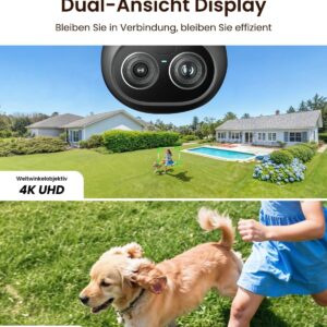 Aufgrund ihrer speziellen Objektivkonfiguration ist die Kamera die ideale Wahl für die Überwachung von Außenbereichen wie Vorgärten, Hinterhöfen und Einfahrten. Zudem eignet sie sich hervorragend zur Beobachtung von Haustieren. Das duale System stellt sicher, dass sowohl Bewegungen im Blick behalten als auch spezifische Details scharf dargestellt werden.