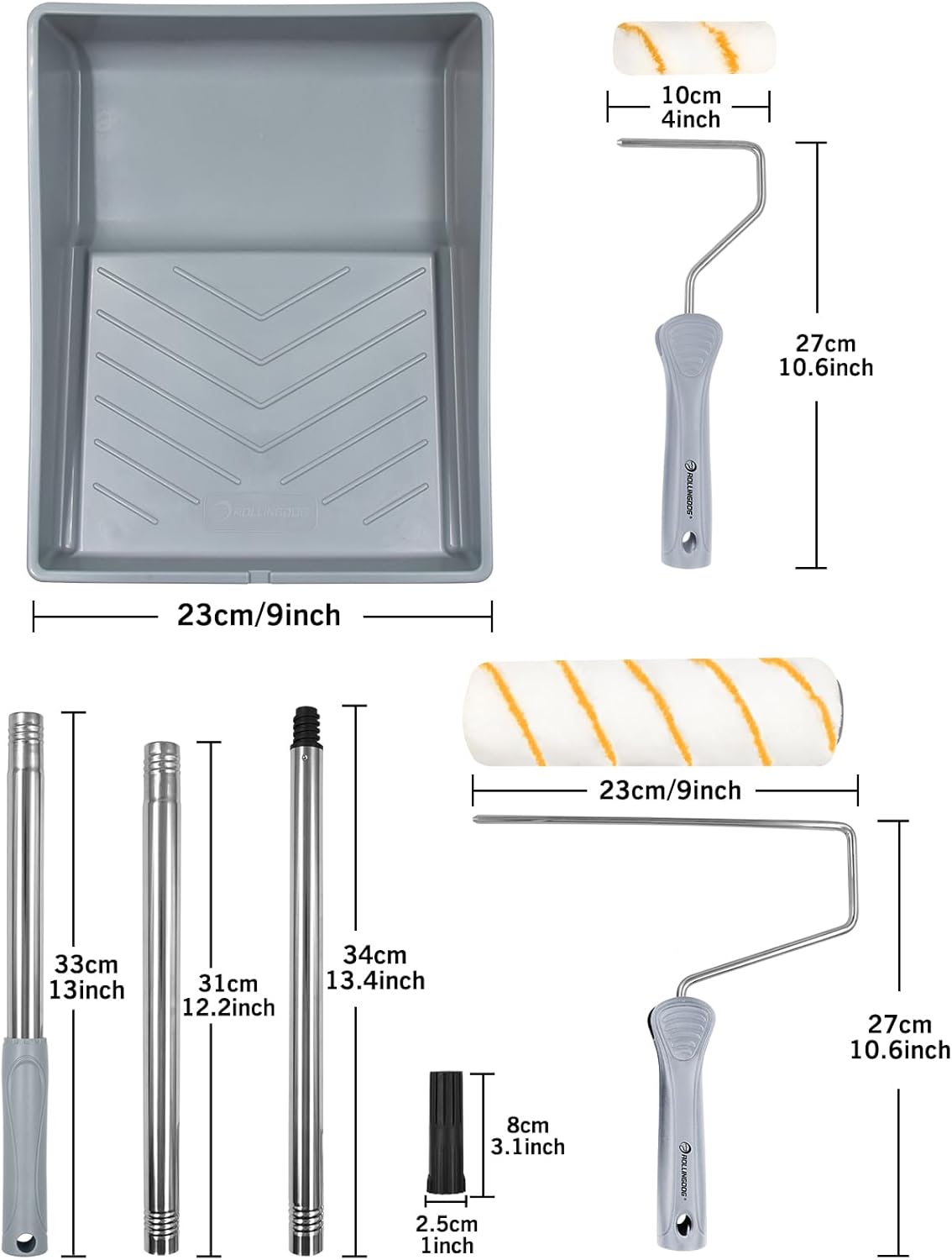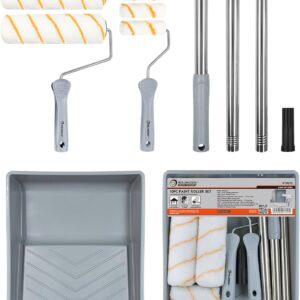 Absolut, das Set ist als Komplettlösung konzipiert: Die 22,9 cm Rollen bewältigen effizient große Wandflächen, während der 10,2 cm Mini-Roller die Präzisionsarbeit bei Kanten und Ecken übernimmt. So erhalten Sie ein professionelles Endergebnis für das gesamte Projekt.